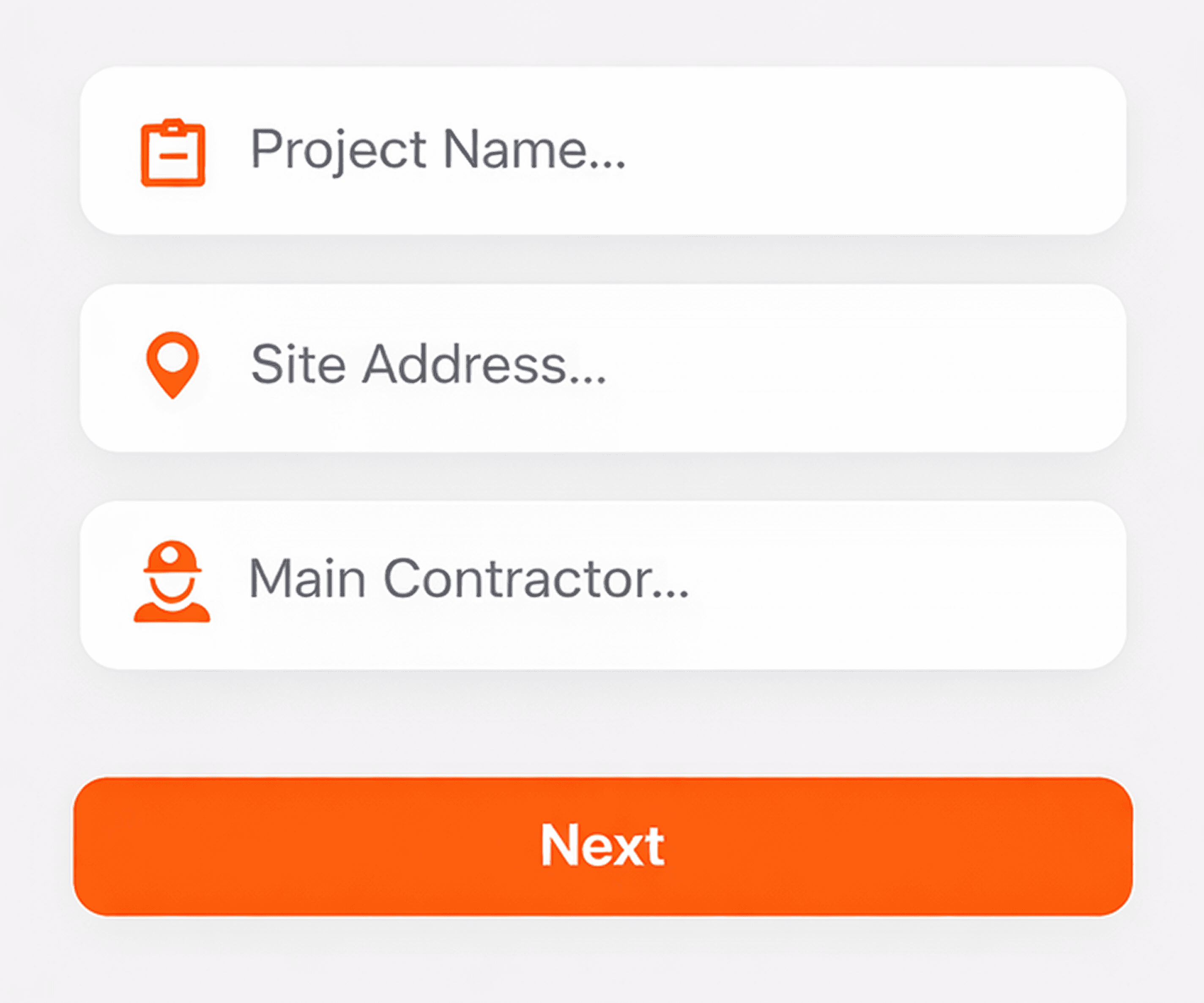 Enter project Name, Site Address, Main Contractor.